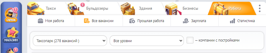 Check out the available job vacancies, find one that matches your skill level, salary expectations, and equipment, then feel free to apply! You might be just the person the company is looking for! You can do this in the garage, under the "work" tab.