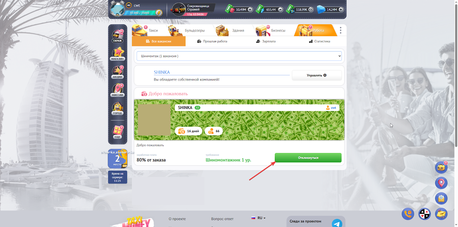 Нужно откликнуться на одну из вакансий “Шиномонтажки”