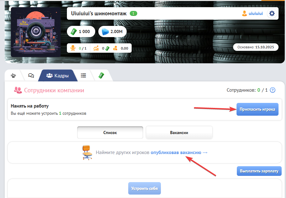 Постройте здание: Построить “шиномонтаж” достаточно легко. Нужно зайти на страницу Бизнесы